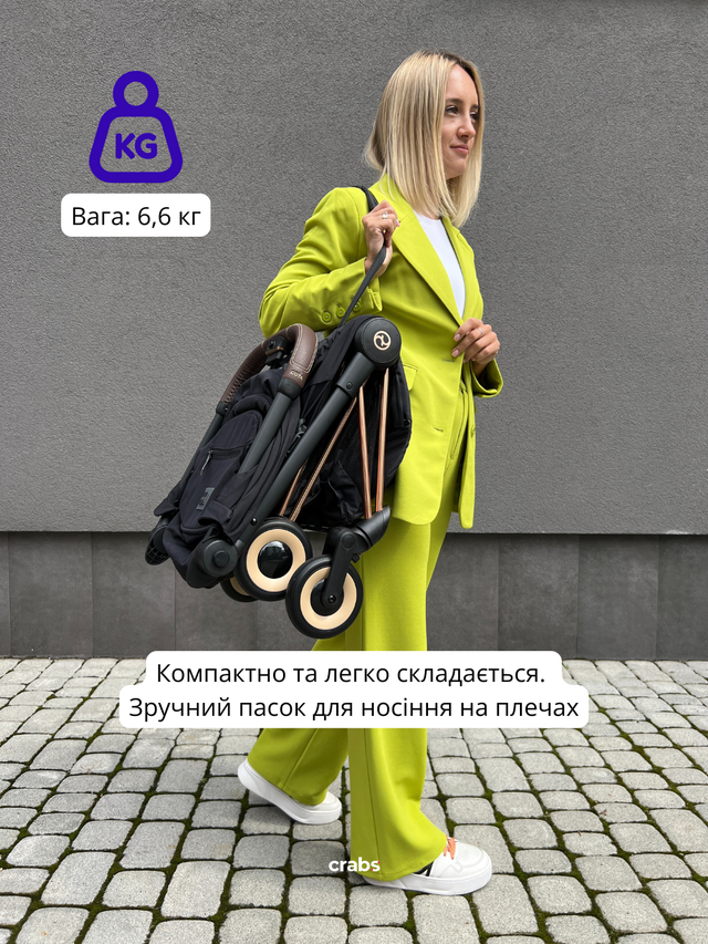 ✅ Компактна та легка – ідеальна для подорожей. ✅ Зручна для батьків – швидко складається, має ремінь для носіння. ✅ Комфортна для дитини – м’яке спальне місце, вентиляція, капюшон із захистом від сонця. ✅ Надійна та безпечна – сучасні ремені безпеки, хороша амортизація.